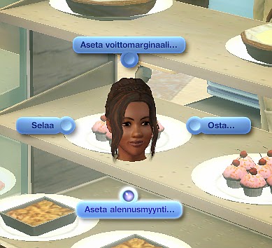 Asiakkaalle puolestaan avautuu valikko, josta voi valita ja ostaa haluamansa tuotteen. Kun simi on ostanut tuoteen se ilmestyy automaattisesti hänen reppuunsa yksittäisenä kakun palasena: